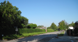 A street with the hedge