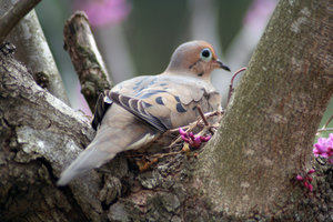 DOVE IN RED BUD TREE