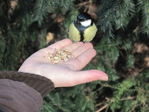 meisje voederen vogel
