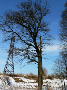 boomstammen door bevroren meer