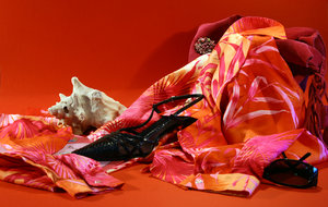 in red, abstract, blouse, handtas, kleurrijk, mode, object, rood, roze, schelp, schoenen, schoonheid, stiletto's, zak