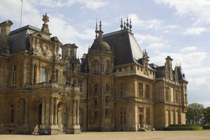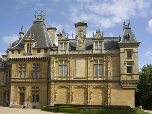 Engeland Engels Groot-Brittannië Renaissance aantrekkelijkheid buckinghamshire gevel herenhuis huis kasteel landhuis luxe luxueus paleis steen toerisme toerist torenspits torentje vermogen waddesdon weelde weelderig klimop drijven gazon bed bloem tuin Arabisch Malta balkon engels stijl gebouw groen oud tumbledown beek blauw bomen boom hemel landschap natuur struiken vijver vlaktes voorjaar water weide wolken bloemen geel grasland