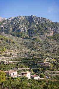 Majorca Spanje balearen beroemde plaats kathedraal mediterrane archit palm blad boom natuur olijven tak verlaat architectuur cultus monument religie religieus steen toewijding knoestig olijf oud romp Spaans berg dorp groen huizen landschap zien drukken machine metalen persen sterk sterkte zwart Middellandse Zee bergen vreedzaam gezicht klif rots avond hemel natuurlijk schemering vrede wolk zonsondergang Ceratonia siliqua Leguminosae johannesbrood tuin