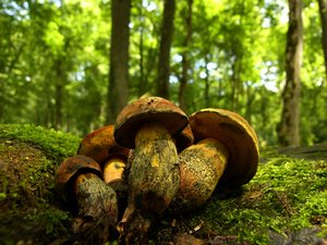 champignons groenten koken paddestoel produceren vers voedsel bos fungus natuur oranje planten lichtbruin nazomer cantharellen gras wild cirkel geel oneven ronde vorm vreemd Forrest bomen wather