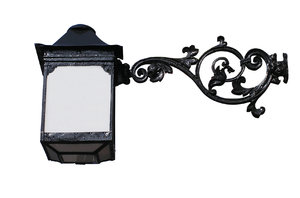 abstract achtergrond arcuated bogen bruin circulaire gebogen licht regelmatig structuren structuur texturen buigen console decoratief gesmeed ijzer lamp lampbeugel lampion ornament schans smeedijzer straatlantaarn versiering wandlamp gebouw muur