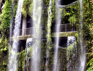 architectuur buigen garage gebogen gebouw gevormd kantoor modern ramen boom buiten curves front gevel glas muur reflection ruiten spiegel verlaat weerspiegeld blokken blokkeren curve gebouwen hoogbouw kantoren raad stad venster werken werkplaats Singapore bouw broeikas high-tech hoeken kas koeling koepel koepels licht planten schuine serre staal structuur transparant tuinbouw tuinbouw- tuinen ventilatie verlichting verwarming zichtbaarheid berg bloemen hoog lang langste milieu uniek water watervallen