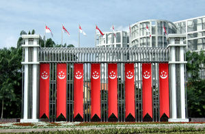 1939 Duits bronzen campaigne onderscheid onderscheiding oversteken was Singapore banners boog decoratief decoraties gekleurd ingericht kleur kleuren nationalisme onderscheiden onderscheidend overheid park patriottisme reflecties stroom tonen trots tuinen vaderlandslievend vlaggen water zwembaden asian-keuken bitter cucurbitaceae eetbaar fruit groen hobbelig hobbels kalebas knapperig koken kruidachtig meloen rassen variatie variëteit verbouwen voeding voedsel banier decoratie symboliek symbolisch symbool vlag bloeiend bloeit bomen cascades cascading cultivars cultuur cultuur- prunus sakura blue-sky boom bundel fruit-boom groei landbouw loof onrijp overvloed overvloedig papaja schaduwen takken tropisch verlaat vruchtbaar zonlicht zonneschijn