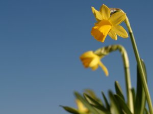 Daffodils and blue sky