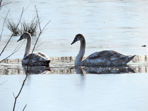 swans on icy lake