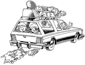 vakantie, auto, auto, ba1969, familie, feestdag, reizen, spotprent, tekening, vakantie