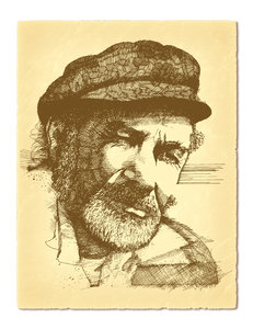 Old Man, heeft, illustratie, inkt, kunst, man, oud, papier, pen, pen en inkt, portret, retro, structuur, tekening, wijnoogst