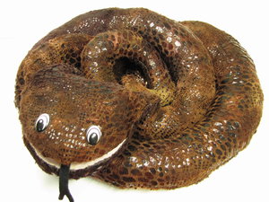 slang, gezicht, handpop, kinderen, ogen, scherp, serpent, slang, speelbal, stof, v tongue