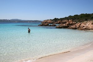 Misschien een duik, Sardinië, beslissen, beslissing, blauw, breken, duidelijk, eiland, feestdag, golf, is, kust, kust, landschap, madeleine, man, overwegen, plezier, rots, schoep, sport, strand, surfen, toerisme, toerist, vakantie, vrije tijd, waden, warm, water, zand, zeegezicht, zomer