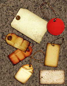 Basho Collage 5, -tags, basho, collage, etiketten, gehavend, gescheurd, grunge, label, label, oud, papier, ruig, rustiek, serie, structuur, variatie, variaties, versleten