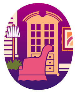 Furniture Icon, decor, geïsoleerd, grafisch, icon, illustratie, kabinet, kamer, kleur, kleur, kleuren, kleuren, kunst, lamp, meubels, meubilair, ovaal, pictogram, stoel, symbool, vorm