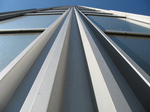 recht omhoog, gebouw, glas, modern, parallel, perspectief, staal, verticaal