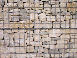 stones behind a metal grate