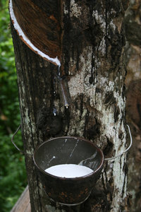 Rubber tappen, Hainan, boom, emmer, hevea, latex, lekken, porselein, rubber, sijpelen, stroom, tik, tikken, wit