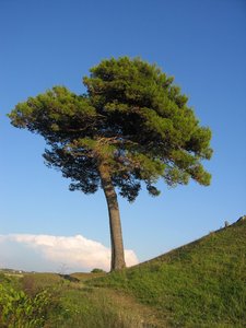 hoge boom, bomen, boom, een, eenzaam, hoog, landschap, lang