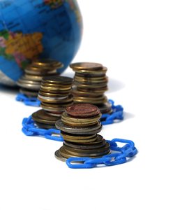 geld koppelingen 1, contant, financiën, geld, keten, munten, muntstuk, planeet, wereld, wereldbol
