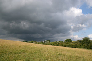 Storm zomer 3, Engeland, beheersen, dekken, dominant, downs, grijs, groen, hemel, heuvel, komen, landelijk, landschap, nadering, onheilspellend, stapelwolk, storm, sussex, veld, voorgevoel, weide, wolk, zomer, zuiden
