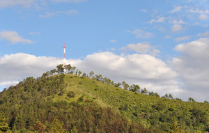 Antenne bij Hill top, antenne, blauwe lucht, bomen, communicatie, heuvel, heuveltop, natuur, wolken