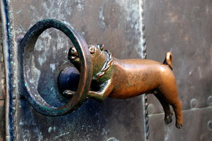 Brass gate handle, Duitsland, decoratie, dier, door handle, geschiedenis, historisch, kerk, messing, metalen, poort van Quedlinburg, varken, zwijn