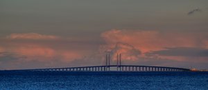 Brug in HDR, Denemarken, Zweden, aansluiting, brug, hdr, is, oceaan, panorama, zonsondergang