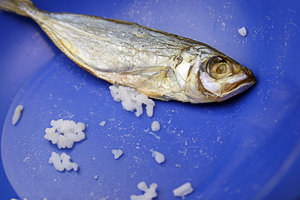 galunggong (mackarel), arm, eten, gedroogd, gedroogde vis, helpen, hongerig, rijst, vis, voedsel