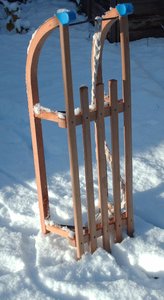 Slee, besneeuwd, bevriezen, bevroren, glijdend, hout, houten, ijskoud, koude, lopers, plezier, rijden, schuif, slee, sneeuw, tobogan, tracks, tuin, volgen, winter