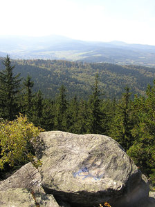 Mountian view, Ladek, Ladek bron, Polen, berg, bomen, bos, bos, bron, den, dennen, horizon, hout, panorama, rocks, rots, wolk, wolken, zandsteen, zien