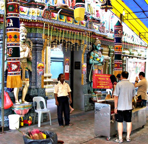 beveiligde tempel, aanbidden, aanhang, aantrekkelijkheid, bewaker, bewaker, decoraties, geloof, gewijd, godheden, hanuman, hindoe tempel, kleur, kleur, kleurrijk, kleurrijk, op blote voeten, religieus, standbeelden, tempel, toegewijden, toeristen, toeschouwers, toewijding, veiligheid