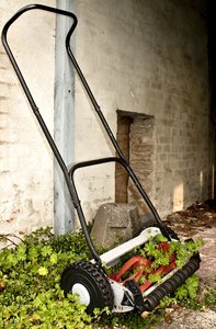 Grasmaaier, grasmaaier, onkruid, oud, tuin, voorjaar