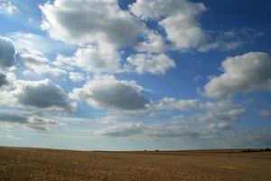 Big sky, Engeland, Hordeum vulgare, avond, boerderij, gerst, gewas, gouden, graan, groot, hemel, horizon, landschap, natuur, stapelwolk, sussex, veld, wolk, zomer