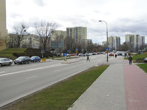 Stedelijk landschap, bestrating, blokkeren, flat, flats, straat, voetganger, voetgangers, voorjaar, warschau, weg, winter