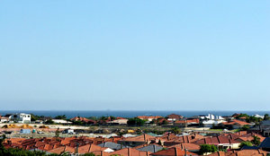 rooftop views, accommodatie, architectuur, blauwe lucht, bomen, bouwkundig, daken, dakwerk, gebouw, gebouwen, hoeken, huizen, huizen, muren, ramen, rooves, straten, tegels, verschijning, voertuigen, voorstad, voorstad oceaan, voorstads-, wazig, zonlicht, zonneschijn