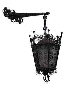 Ijzeren lamp, buigen, console, decoratief, gebogen, gebogen, gesmeed, ijzer, lamp, lampbeugel, lampion, licht, ornament, schans, smeedijzer, straatlantaarn, versiering, wandlamp
