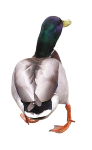 Duck wandelen, eend, geïsoleerd, het graven, knipsel, mannelijk, triest, vogel, wandelen, wilde eend, zoeken, zoeken