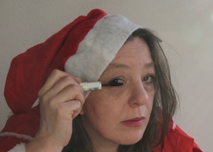 Santas Mate, Kerstmis, claus, concentratie, dekken, gezicht, glimlach, maskerade, portret, santa, vermommen, verzinnen, voorbereiding, vrouw, vrouw, xmasphoto2012