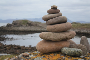 Rotssculpturen, Schotland, abstract, artistiek, bergen, is, kiezel, kunstenaar, kust, lichen, opstapelen, pool, rots, rotsachtig, sculptuur, sereniteit, steen, strand, toren, vrede, water, wolken