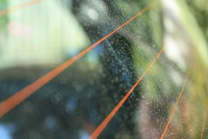 Achterruit, achterkant, auto, auto, druppels, oranje, perspectief, regen, scherm, terug, venster, verwarmd, water