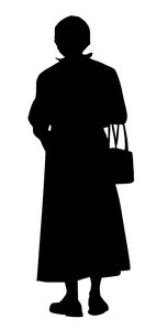 Oma, geïsoleerd, grootmoeder, grootmoeder, handtas, knipsel, man, oma, ouder, rok, schaduw, silhouet, vorm, vrouw, zak, zwart en wit