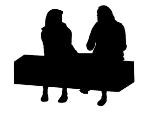 On a bench, babbelen, bank, meisjes, mensen, paar, rest, schaduw, silhouet, vorm, vrienden, zitten