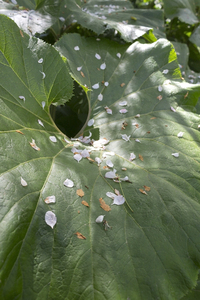 Foliage and petals, aderen, blad, bloemblaadjes, groen, licht, loof, natuur, natuurlijk, plant, rustig, rustig, schaduw, schaduw, tuin, verlaat, vrede, zonlicht