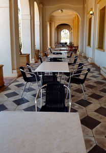 veranda dineren potentiële 1, aangesloten, achtergrond, betegelde, bevloering, bogen, dining, eating-gebied, eating-out, eethoek, getextureerde, gewelfd, hoeken, klaar, kleur, kleur, kleuren, kleuren, leeg, licht, lijnen, luchtig, meubels, meubilair, no-klanten, omgeving, oppervlak, oppervlakken, patronen, pijlers, ruim, ruimte, service, sfeer, stoelen, structuur, tafel, tafels, tegels, texturen, vacant-plaatsen, veranda, veranda, verhardingen, verlichting, verschijning, zetels, zitplaats