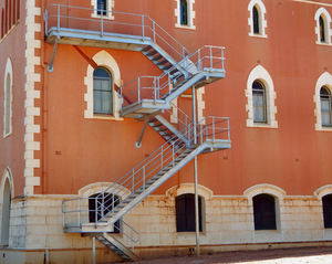 brand escapes4, Australië, accommodatie, architectuur, boog, bouwkundig, buitenkant, communie, donker, erfgoed, extern, gebogen-ramen, gebouw, geschiedenis, gewelfd, herberg, historisch, historisch, hoeken, hoog, hoogte, kamers, landelijk, metselwerk, muren, ontsnappen, ontwerp, oppervlakken, oud, rails, ramen, solide, staal, stappen, toevoeging, trap, uitgang, veilig, veiligheid, verschijning, vlakte, vooruitzichten