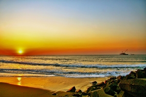 sunrise serie 1, Indische Oceaan, gloed, gouden, is, kust, rocks, strand, water, wrak, zand, zonsopgang