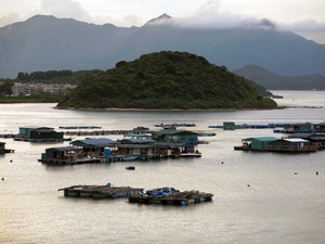 viskwekerij dorp 2a, 2014, bergen, boerderij, boten, kustlijn, oceaan, visvangst, water