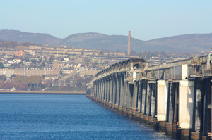 tay spoorbrug, brug, dundee, hand, heuvels, ijzer, is, kruising, kust, kust, kustlijn, kustlijn, metalen, onderhoud, oversteken, rail, reparaties, rivier, riviermonding, stad, tracks, water