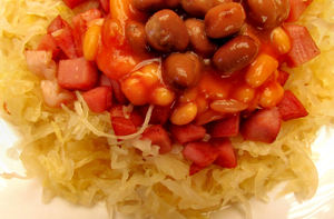 tasty tangy meal1, achtergrond, bonen, diner, dinner-plate, eetbaar, fijn gesneden, gearomatiseerd, gearomatiseerd, gebakken bonen, gefermenteerde, gekleurd, gekleurd, gekookt, gekookt-food, gekookt-maaltijd, gemengd, groenten, hartig, hartig, het eten, kleur, kleur, kleuren, kleuren, kool, maaltijd, mengsel, smaak, smakelijk, smaken, smaken, snijden, structuur, texturen, variaties, variëteit, verschijning, verschijningen, vlees, voedsel, zuur-kool, zuurkool